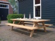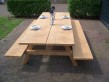 Oerdegelijke eiken picknicktafel voor 8/10 personen.
